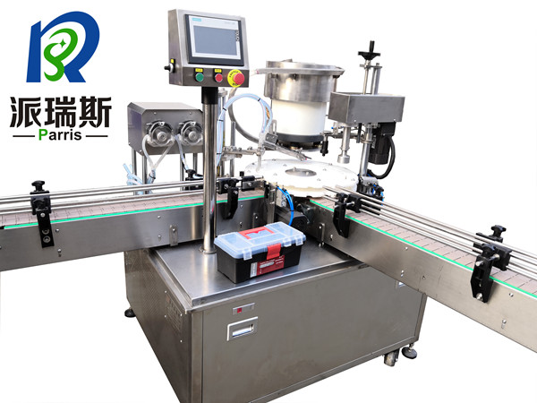This machine is mainly available to fill shampoo, gel, cream into various round and flat plastic or glass bottles with the range from 10--200ml.High precision cam provides a regular plate to position, cork and cap; accelerating cam makes capping heads going up and down ;constant turning arm screws caps; creepage pump measures filling volume; and touch screen controls all action. No bottle no filling and no capping. If there is no plug in the bottle, it must not cap until having been detected plug in the bottle. The machine enjoys high position accuracy, stable driving, precise dosage, and simple operation and also protects bottle caps.